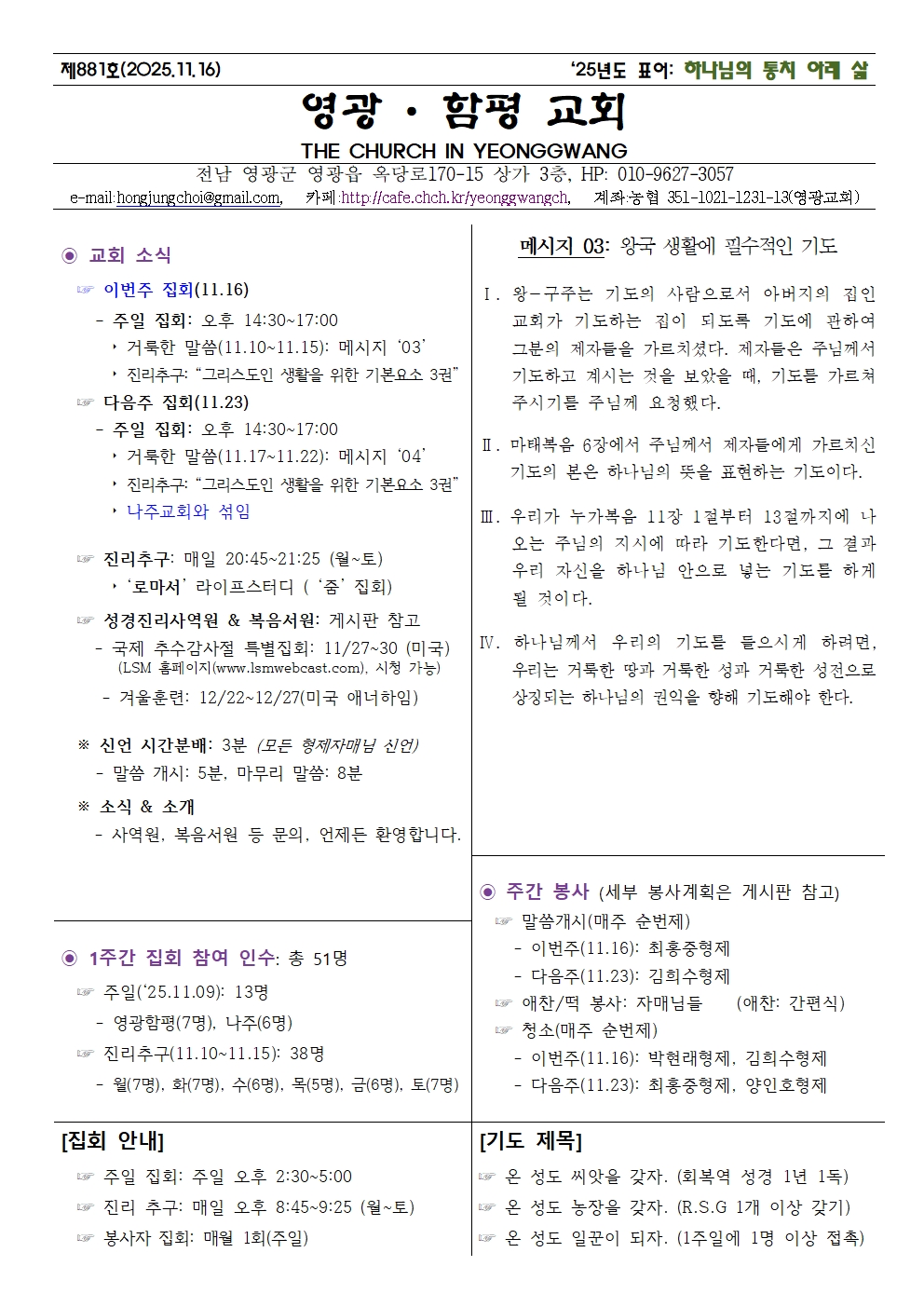 영광함평 교회소식지 (제881호/ 2025.11.16)