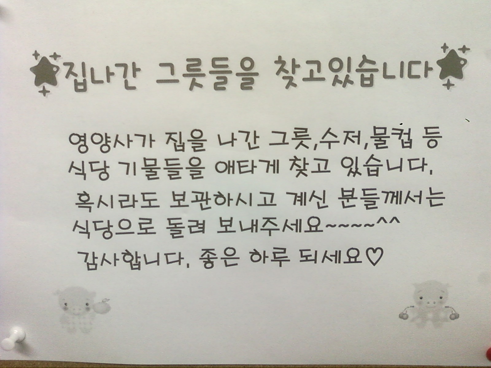 이번 주에 직장내 구내식당에서 식사를 하고 나서 동료들이 보고 있는 게시판을 보는데,